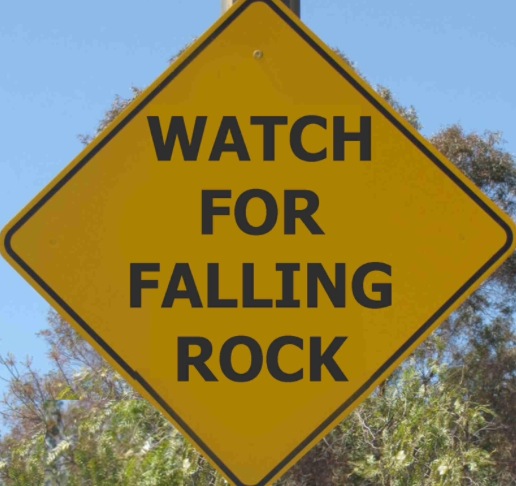 He explained that even though the rocks fell down from the cliffs above, what drivers need to be on the lookout for were rocks that had already fallen down onto the road. He said looking up in an attempt to protect yourself from what might become a danger to you could prevent you from noticing an obstacle or stumbling block already in your path.